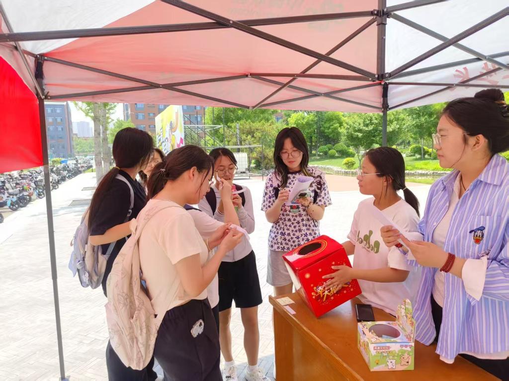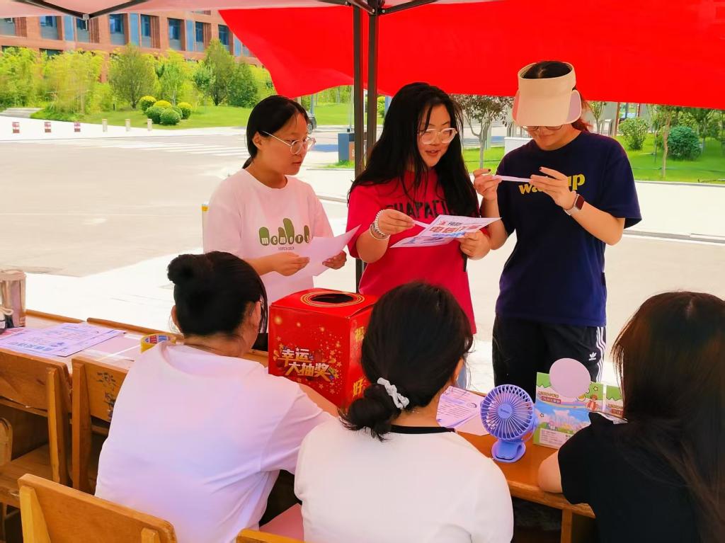 活动现场精彩纷呈,秩序井然。身着统一红色马甲的志愿者们将精心设计的反诈宣传手册递到往来学生手中。咨询区前,鲜红的反诈骗横幅格外醒目,吸引众多学生驻足咨询。
